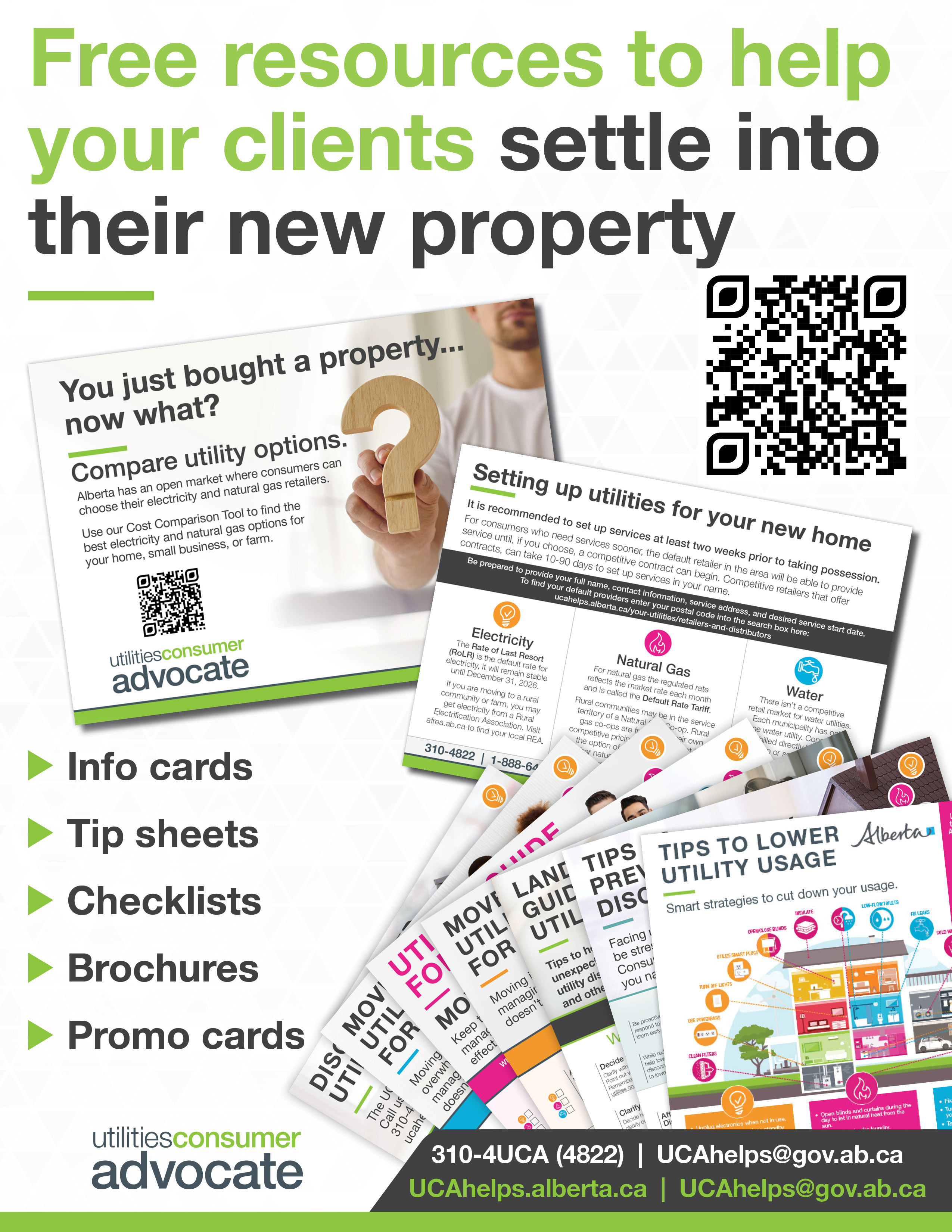 The UCA is here to help Alberta's utility consumers. Use this poster for quick access to all of the UCA's resources.