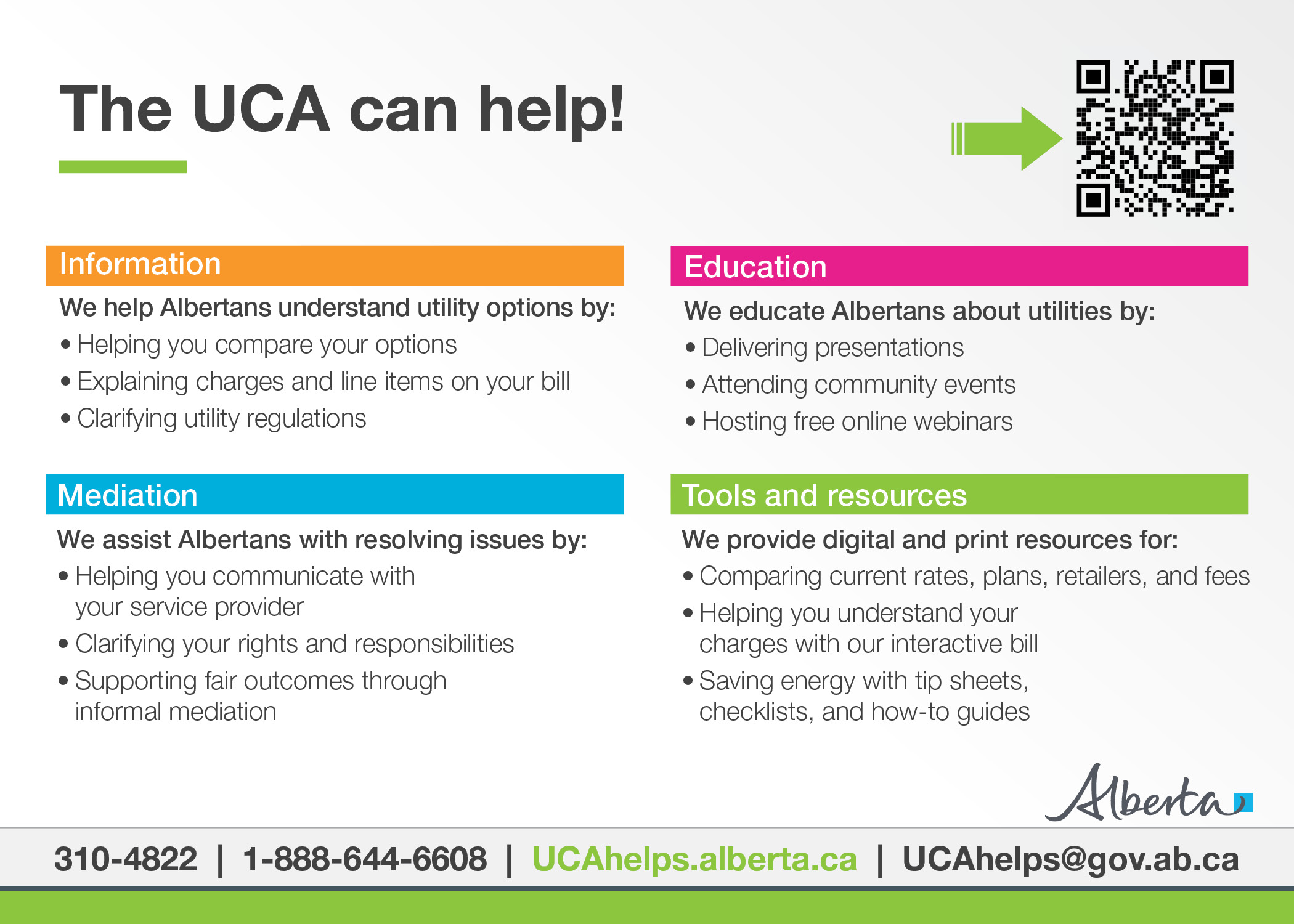Learn about how the UCA helps electricity, natural gas, and water consumers in Alberta.